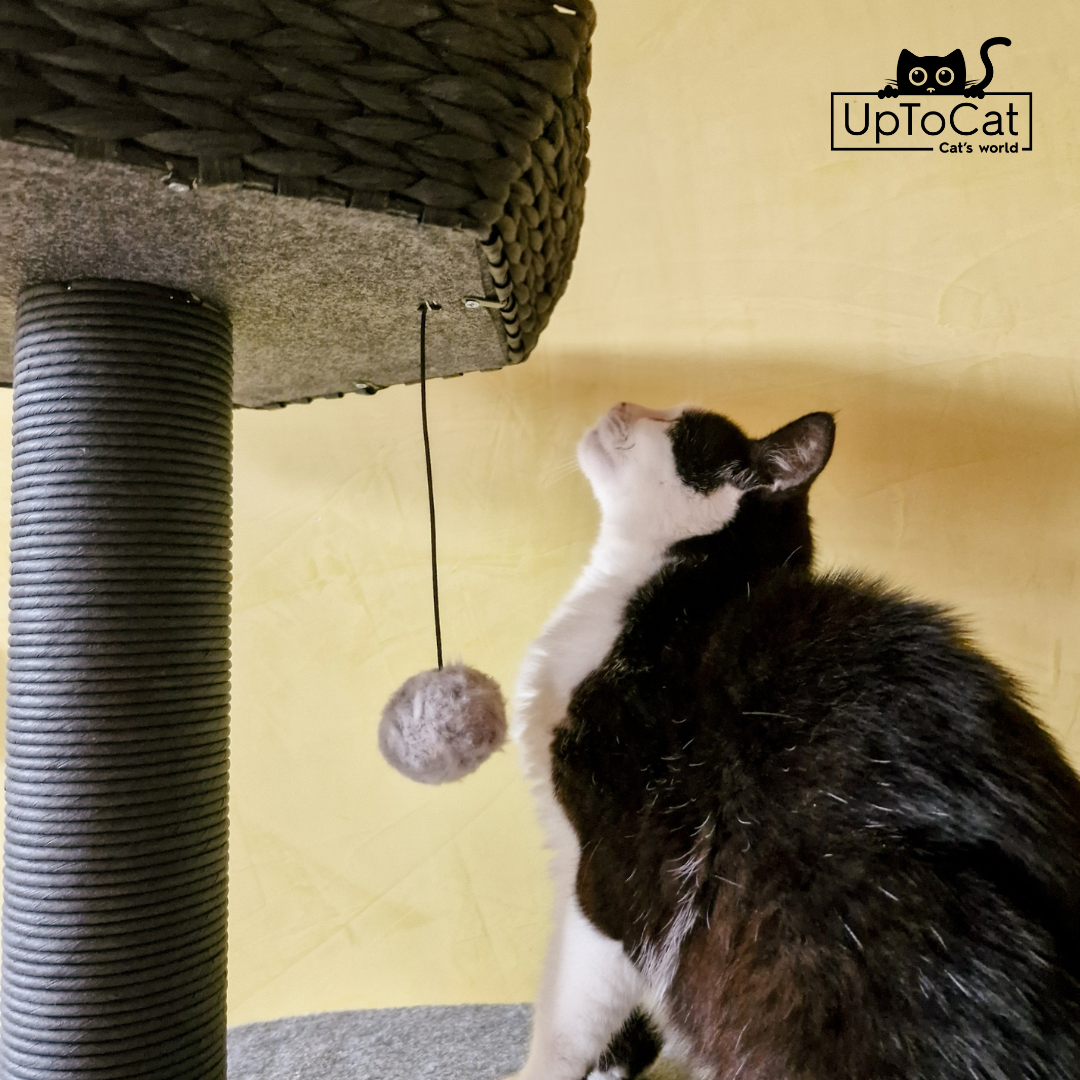 Naudotas ekspozicijoje, turi pabraižymų. Kačių medis pagamintas iš patvarios tekstilės, turi storą pagrindą ir 8,5 cm skersmenį. Su hamaku, paminkštintomis platformomis ir slėptuve tai yra puiki vieta jūsų katei atsipalaiduoti. Pagalvėlės yra nuimamos ir aptrauktos minkštu pliušu papildomam komfortui.