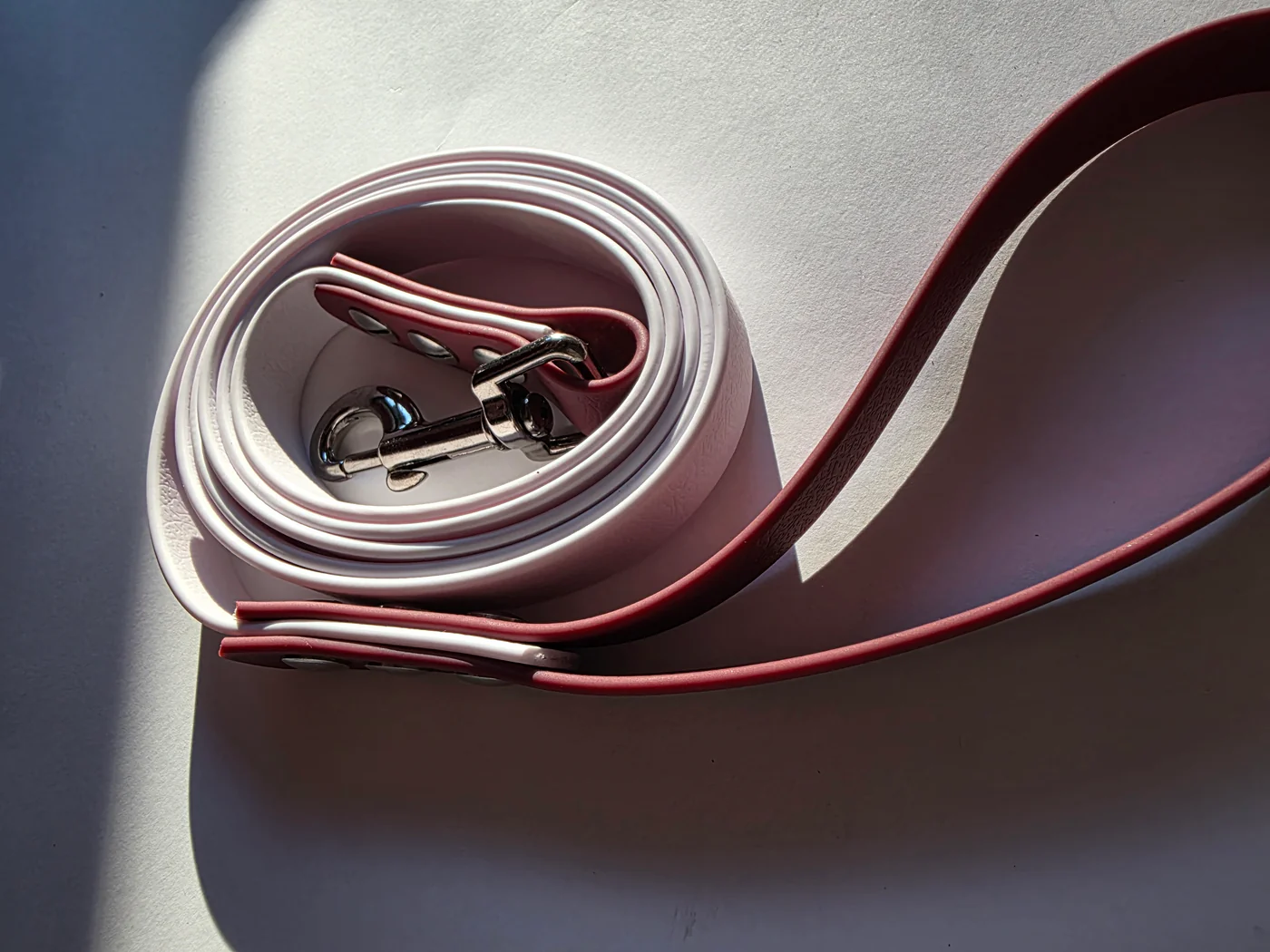Pavadėlis dengtas pvc, baltas su bordo rankena