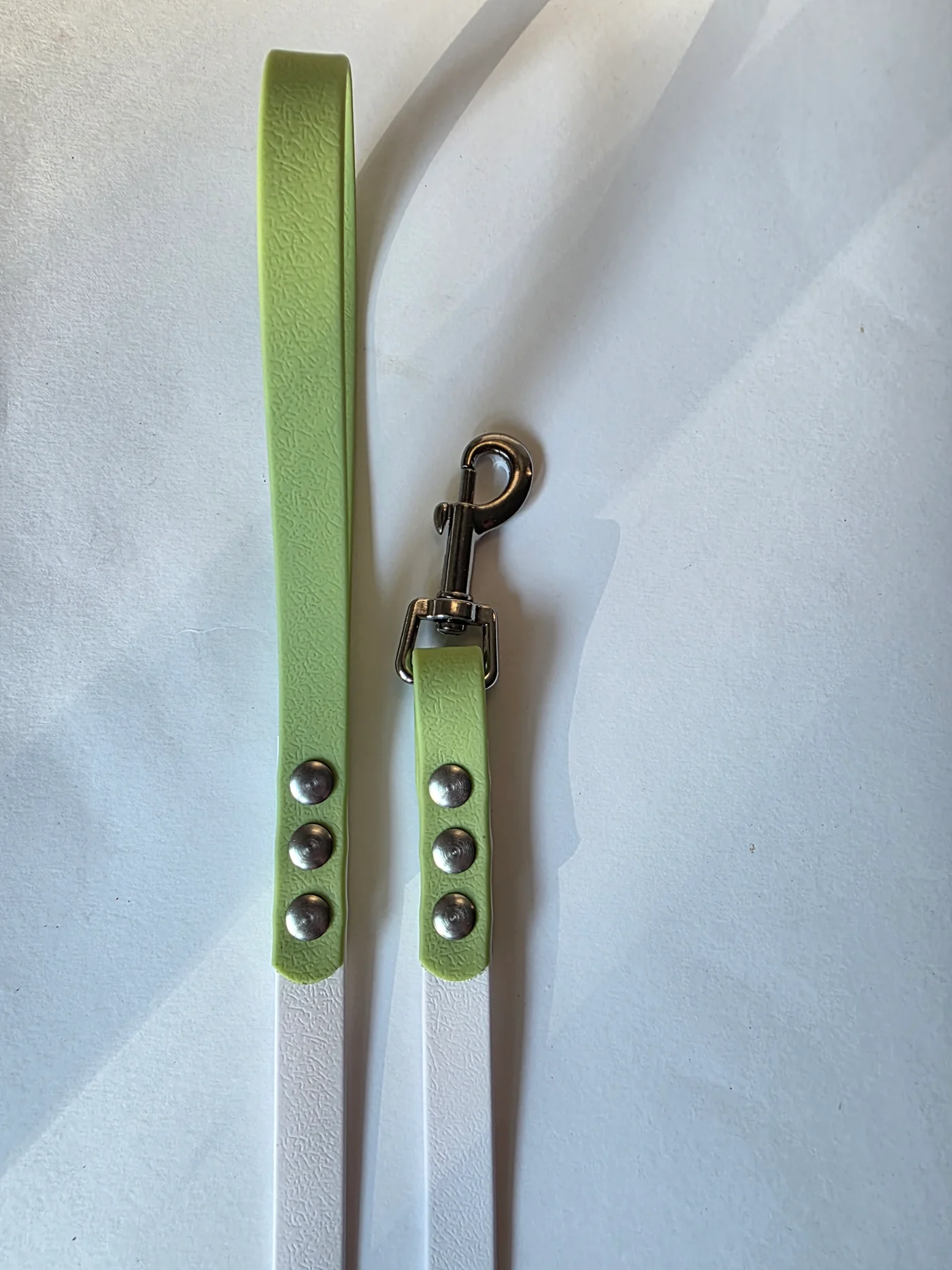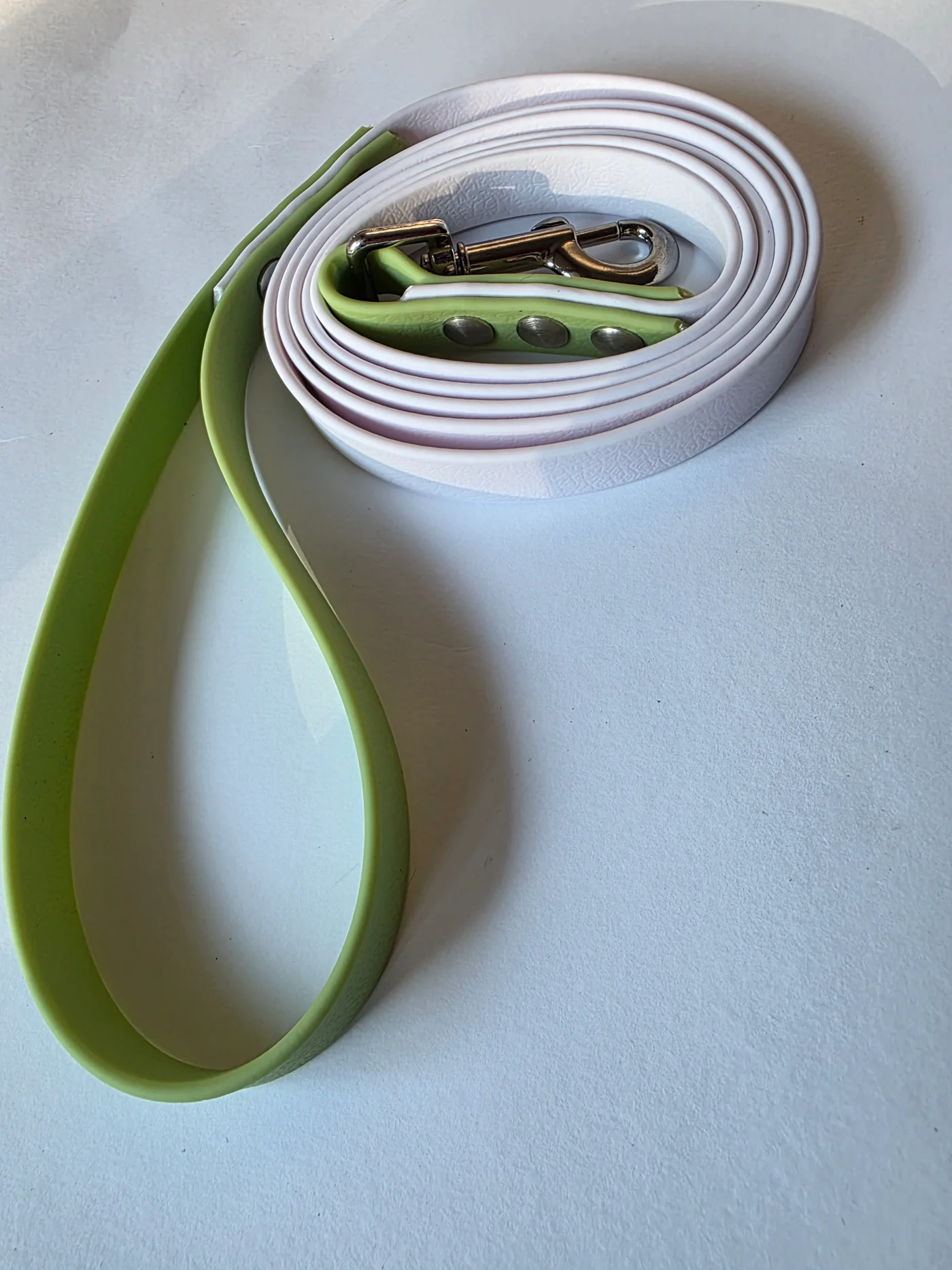 Pavadėlis dengtas pvc, baltas su žalia rankena
