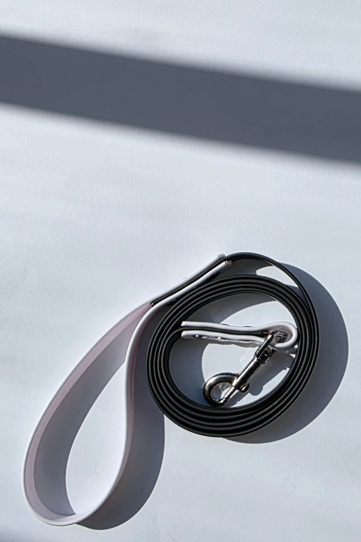 Pavadėlis dengtas pvc, juodas su balta rankena