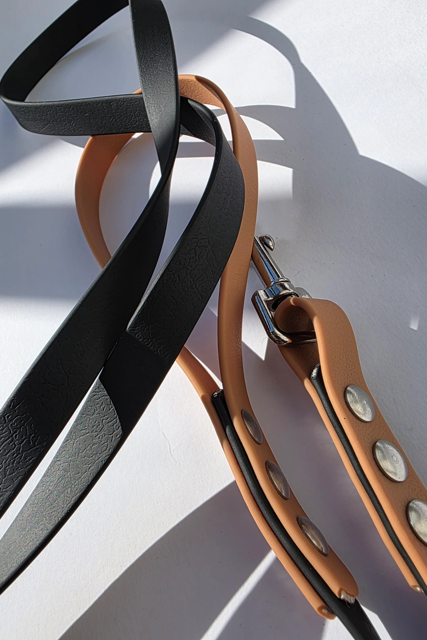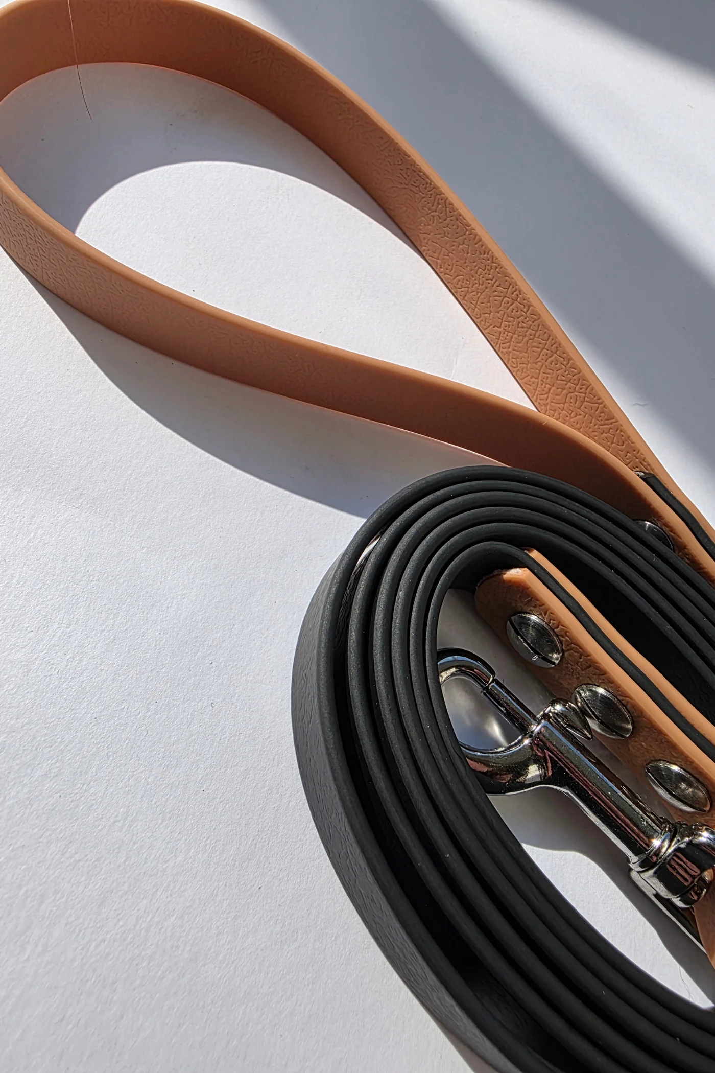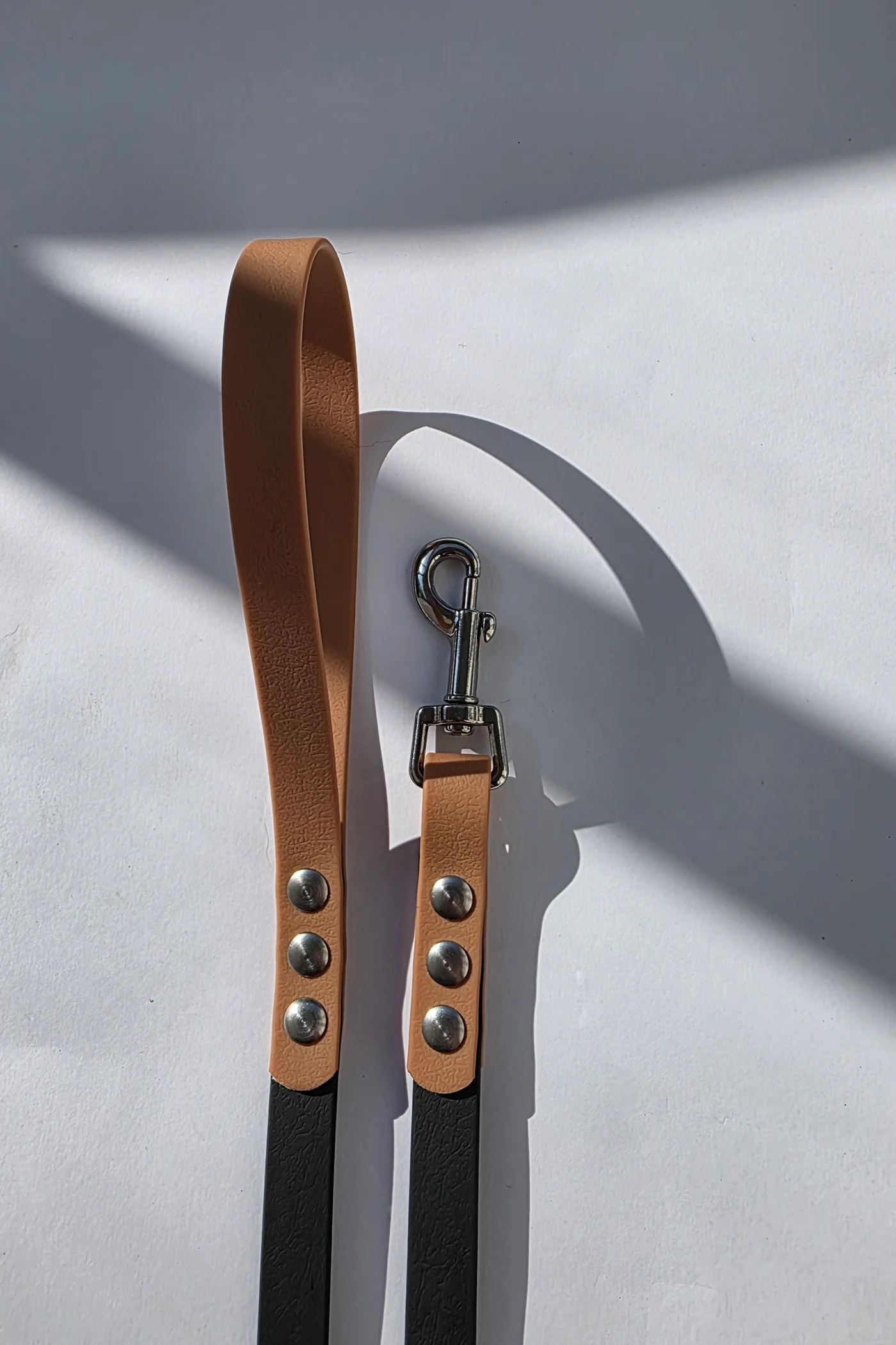 Pavadėlis dengtas pvc, juodas su ruda rankena