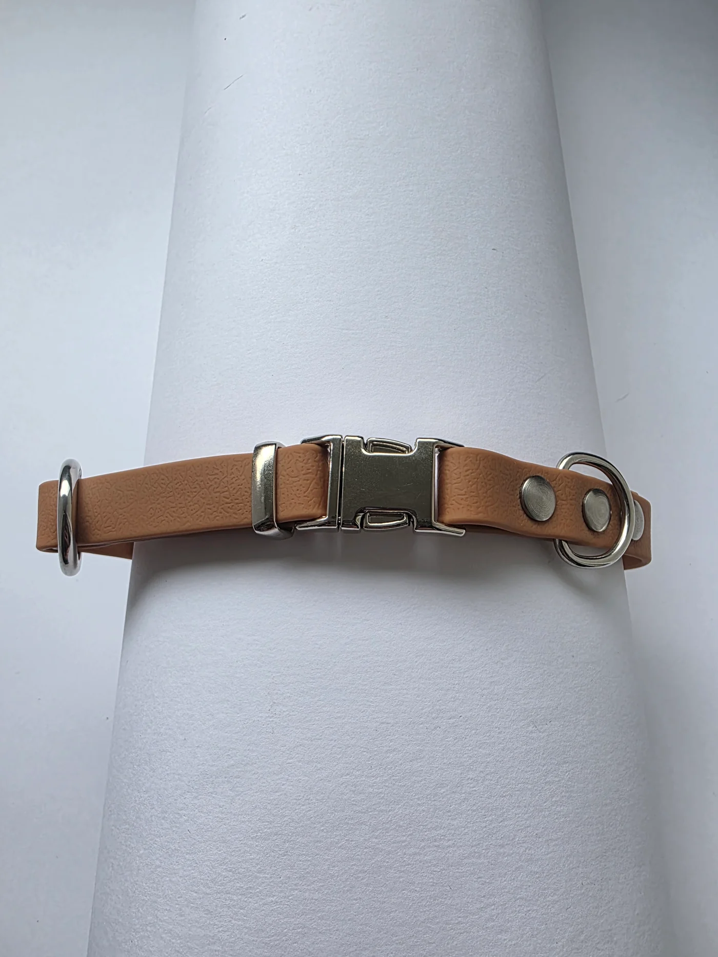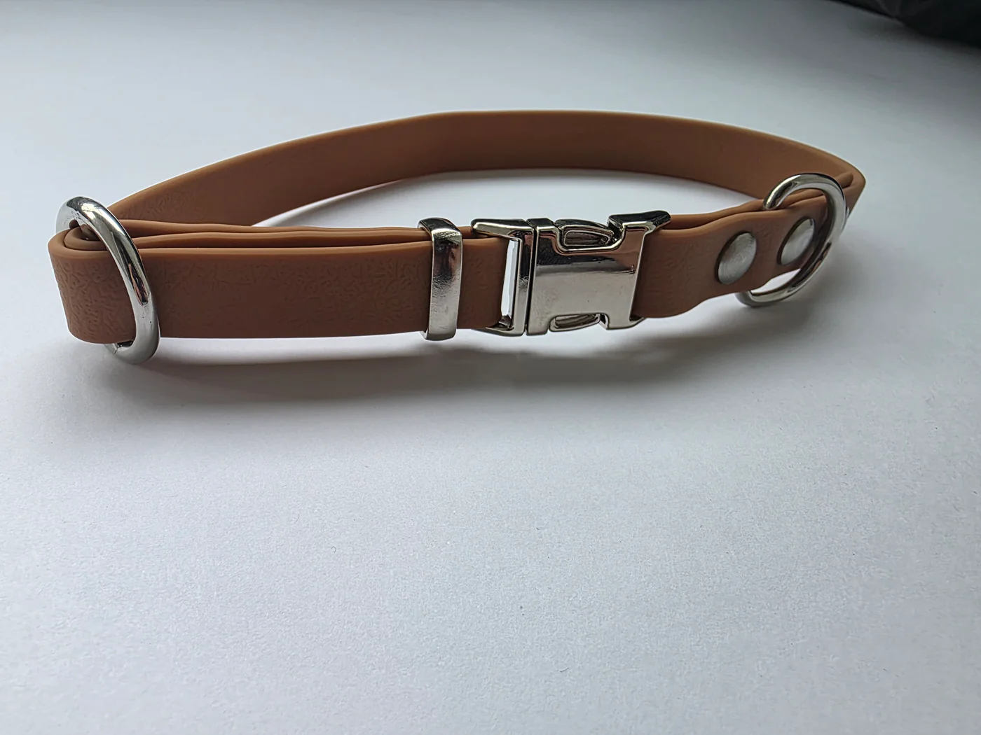 Tvirtas, lankstus ir patikimas – šis šuns antkaklis pagamintas iš poliesterio juostos, padengtos PVC sluoksniu, kuris užtikrina atsparumą oro sąlygoms, drėgmei ir kasdieniam dėvėjimuisi. Medžiaga neprisigeria kvapų, todėl namuose neatsiras nemalonaus kvapo net po lietingų pasivaikščiojimų.