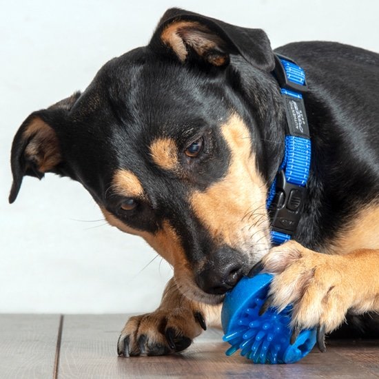 Treat Tereikia tik pridėti į kamuoliuką skanėstų ir Jūsų šuo galės ilgai žaisti. Bounce and Fetch Pakankamai minkštas, kad nepažeistų jūsų šunų dantų, bet pakankamai tvirtai, kad šokinėtų! Gum Massaging Smagiai kramtant išsaugomos sveikos dantenos. Bite-o-Meter 1 – Labai minkštas 2 – Minkštas 3 – Vidutinis 4 – Kietas 5 – Labai kietas