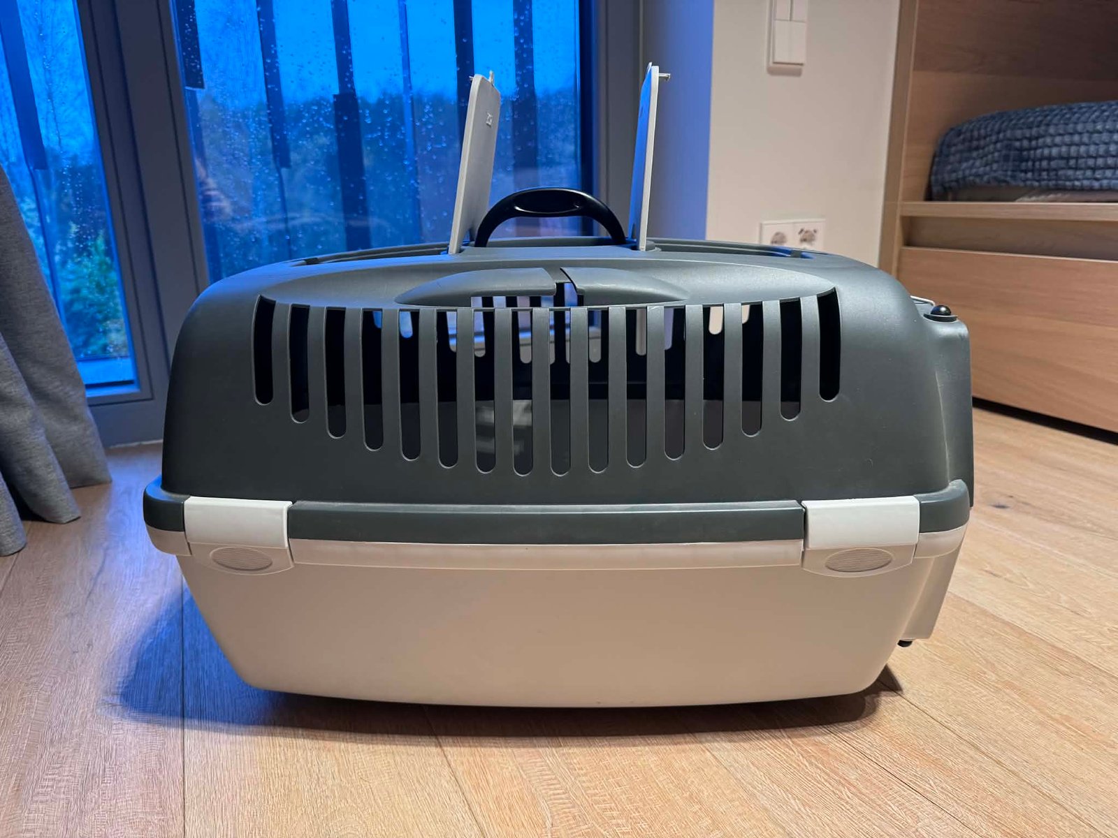 Visiškai naujas, nenaudotas, praktiškas ir universalus transportavimo narvas-boksas, tinkantis mažo-vidutinio dydžio šunims/katėms. Jame yra šoniniai plyšiai, užtikrinantys tinkamą vėdinimą viduje, metalinės ir patvarios durys, kurias galima uždaryti iš išorės specialiais spaustukais. Transportavimo narve taip pat yra įrengti saugos diržų lizdai, pro kuriuos perkišus automobilio saugos diržus, transportavimo narvas yra saugiai ir stabiliai pritvirtinamas prie sėdynės. Transportavimo narvas turi ergonomiška rankeną.