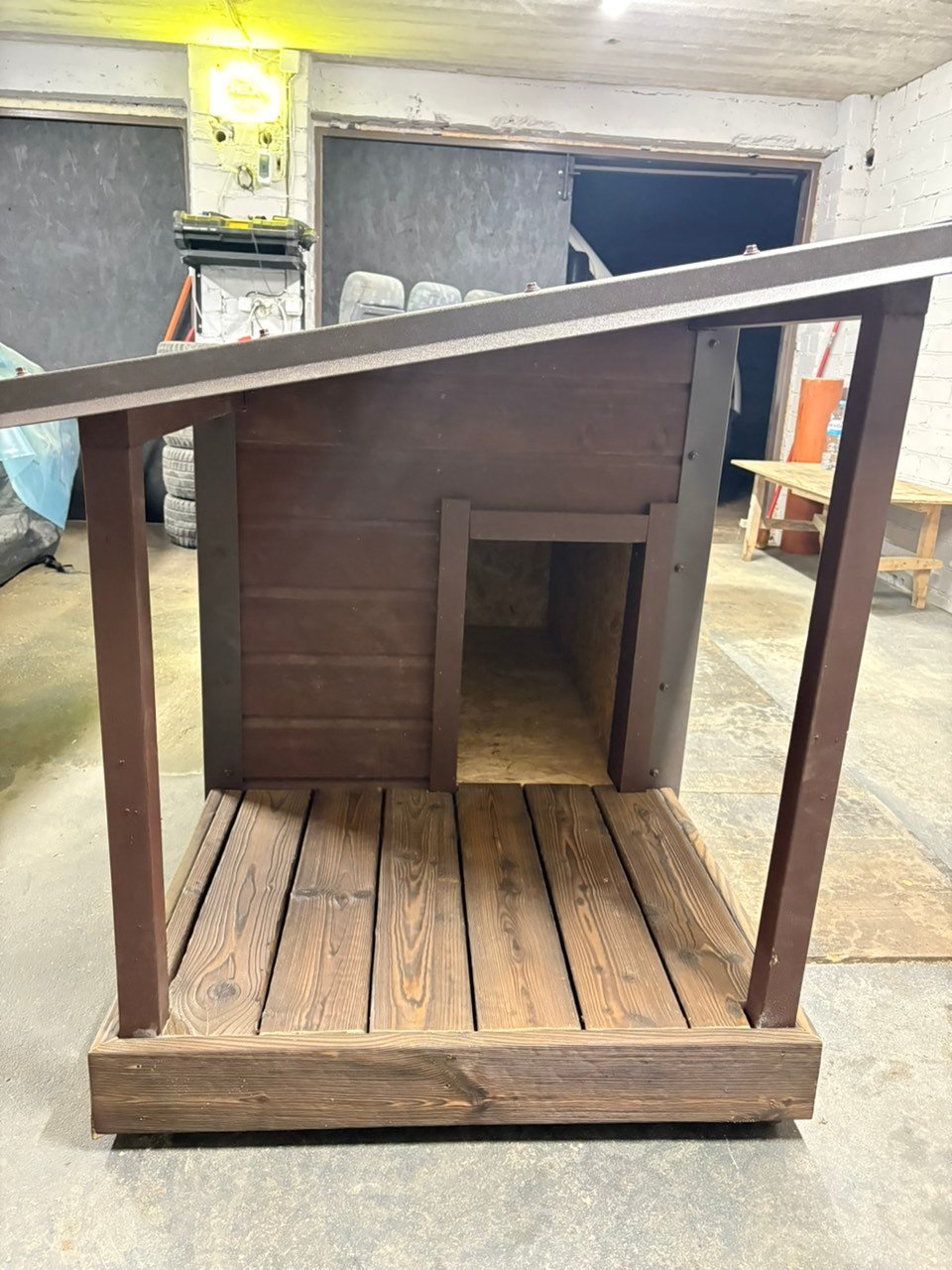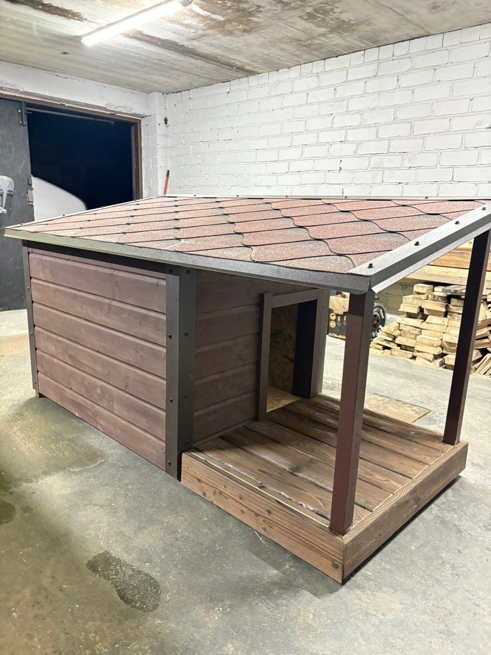 Būda skirta dideliam šuniui Pakelta nuo žemės,jog nešaltu, grindys, sienos, lubos šiltintos 5cm, iejimas šone, jog būtu užuovėja. Matmenys: Stogo: 2m x 1m Aukštis iš išorės: 1,08m ir 0.87m Aukštis viduje: 0,81m ir 0.68m Išorinės sienos: 1,23m x 0,89m Vidinės sienos: 1,03m x 0,69m Terasa: 0,7m x 0,86m Iėjimas: 0,31m x 0,47 Nemokamas pristatymas Plungėje, kitur pagal susitarima. 320eur