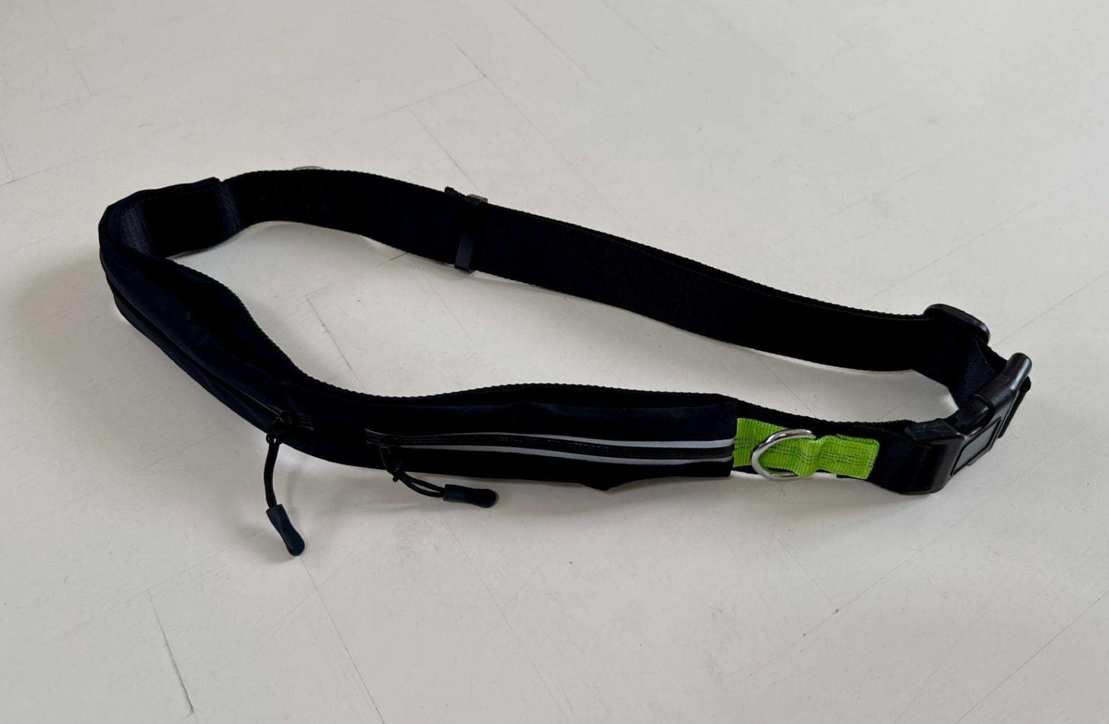 Naujas diržas bėgimui su šunimi.Ilgis – reguliuojamas, yra du žiedai ir dvi užtraukiamos bei išsiplečiančios kišenės.