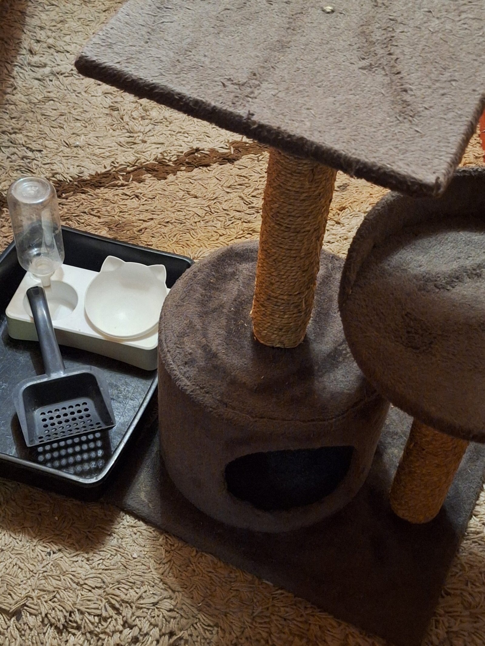 Kačių draskyklė, kraiko dėžutė, kastuvėlis, maitinimo indas, Benek kraikas 4 kg, nagų kirpimo žirklės, WC kvapo šalintojas ir gaiviklis