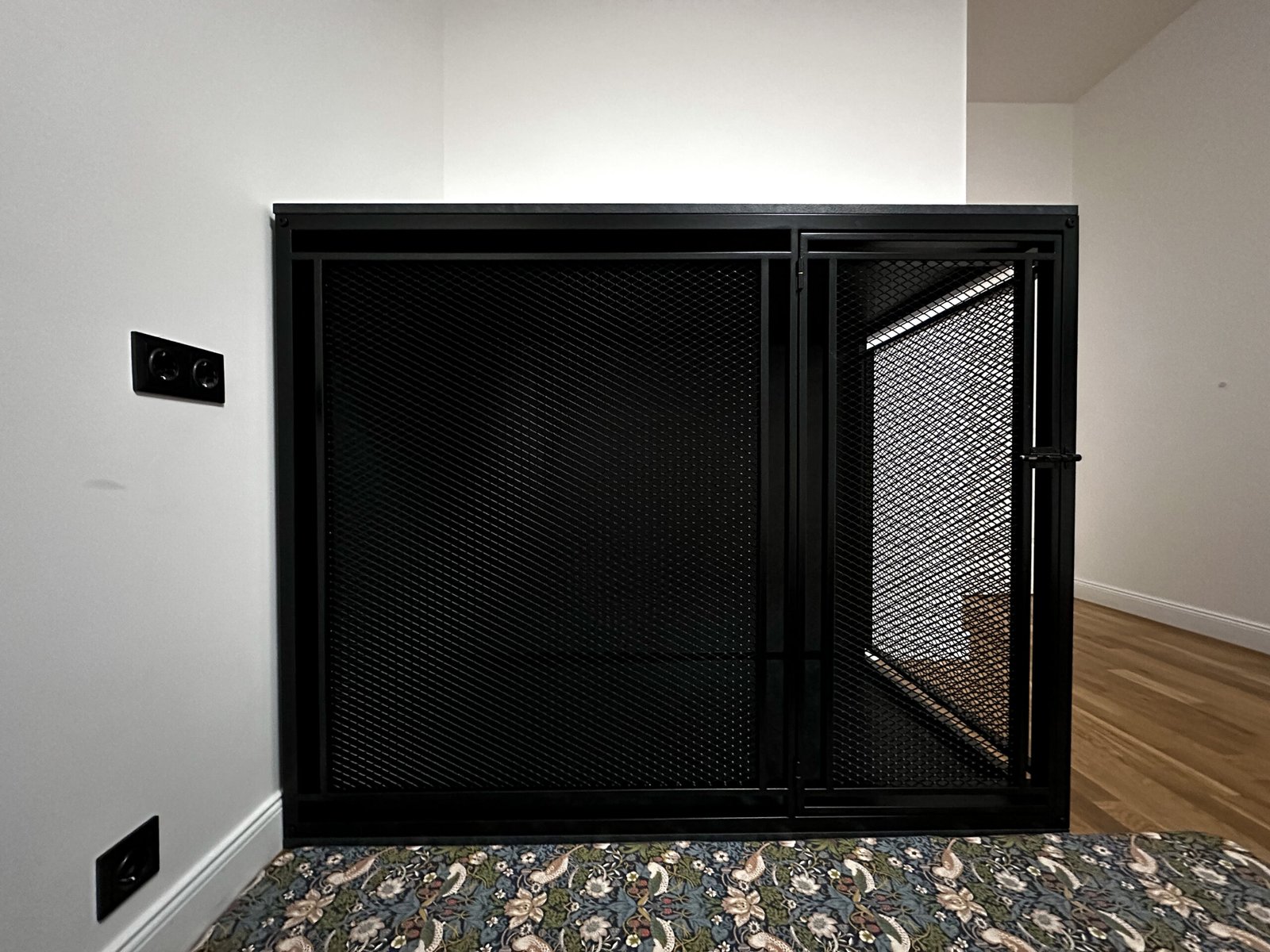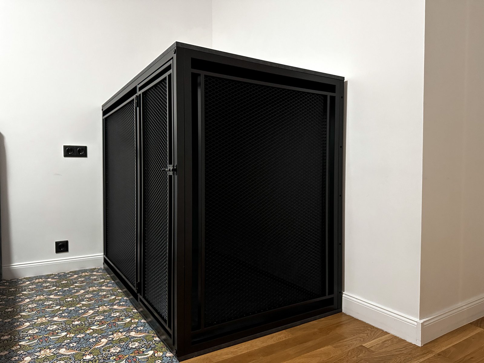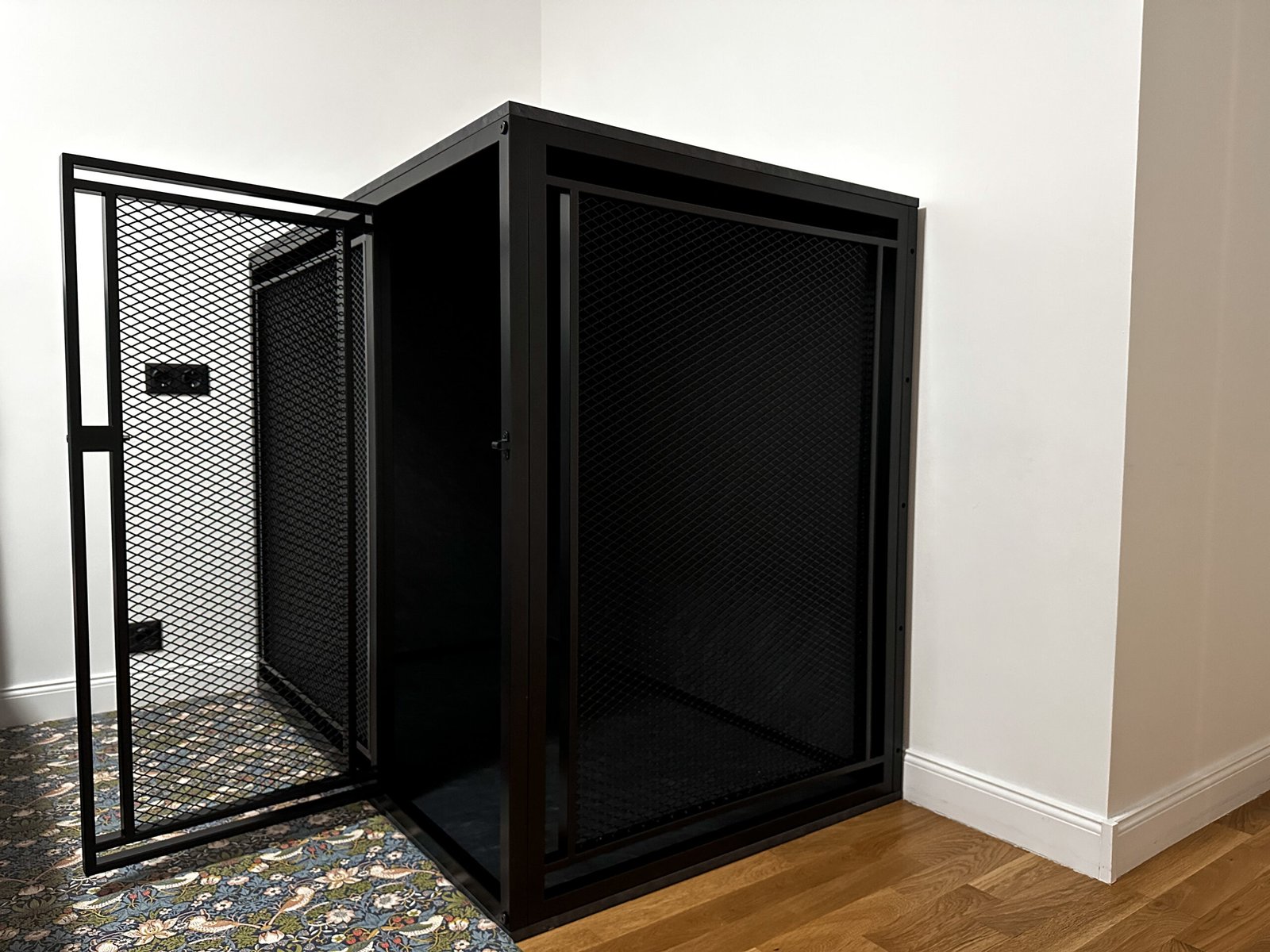 Tiesą sakant, tai net sunku pavadinti narvu – greičiau tai jaukus šuns namelis, kuriame ji gali atsiriboti ir pailsėti.