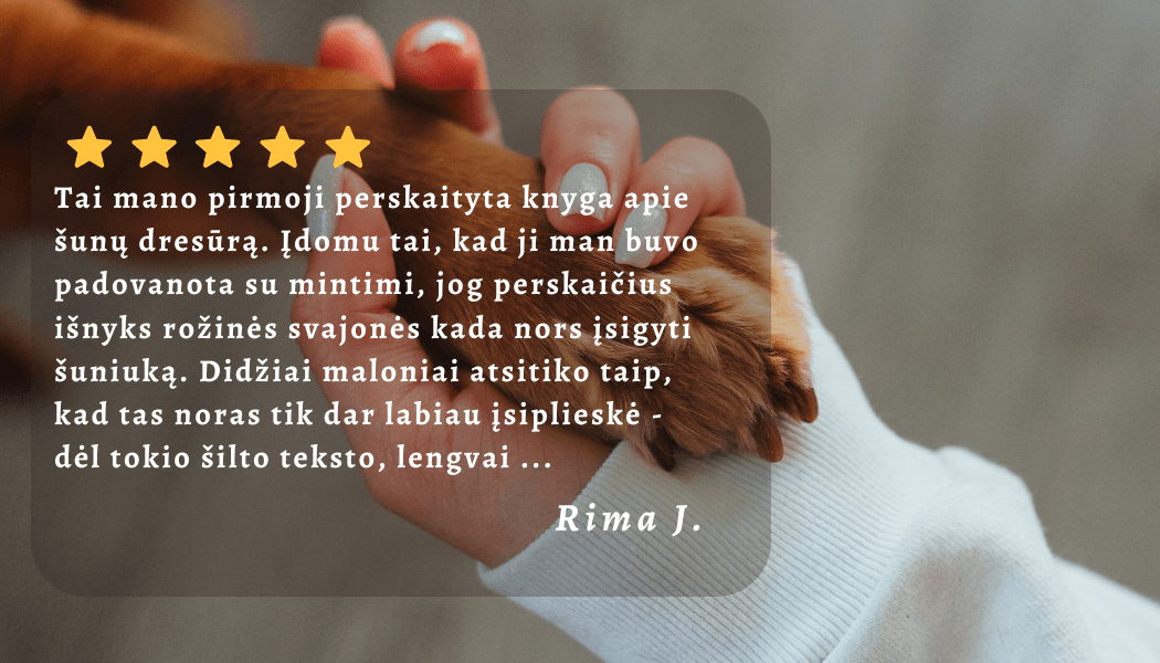Šunų dresūros ir socializacijos knyga padedanti kurti harmoningus ryšius. Tinka visų veislių šunų augintojams. Knyga papildyta QR kodais, kuriuos nuskenavus galima peržiūrėti autoriaus paruoštus filmukus kaip atliekamos komandos. Pilną knygos prezentaciją galima paskaityti https://www.knygatau.lt