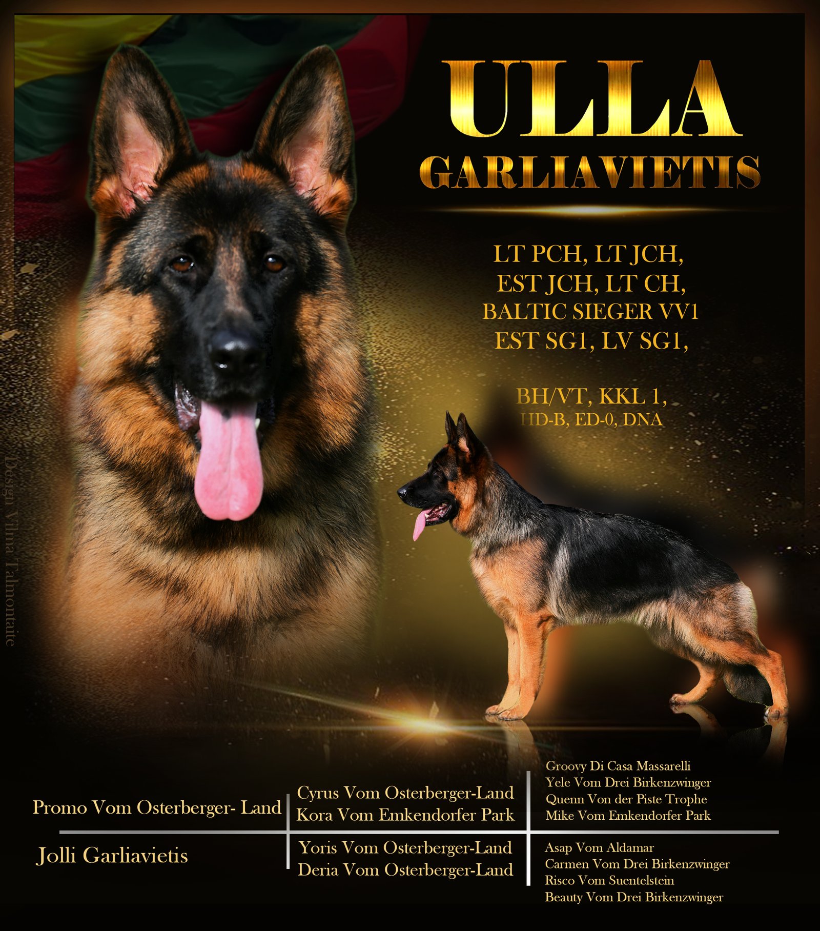 Abu tėvai sveiki, išlake egzaminus, daugkartiniai spec. parodų nugaletojai, Tėtis pasaulio čempionate V22, 2xVA1 (Vokiškas kergimas) Daugiau info +37068299975